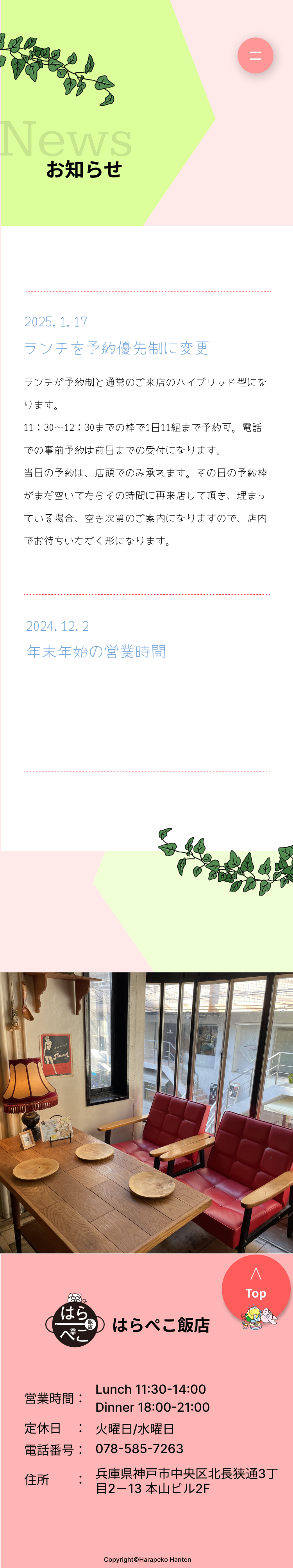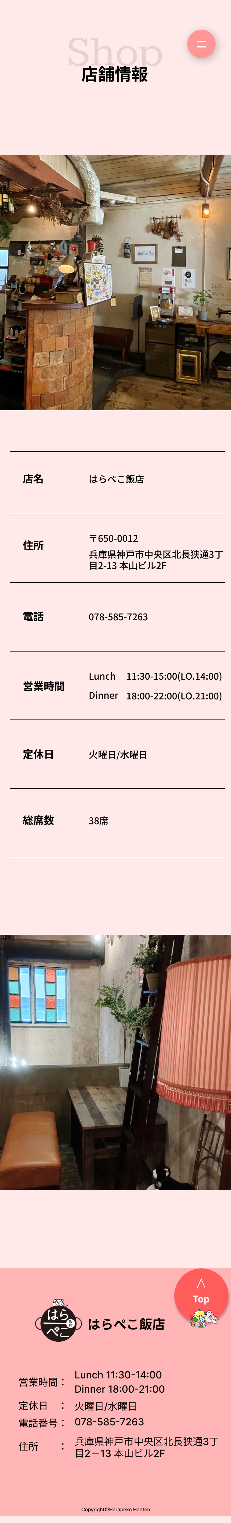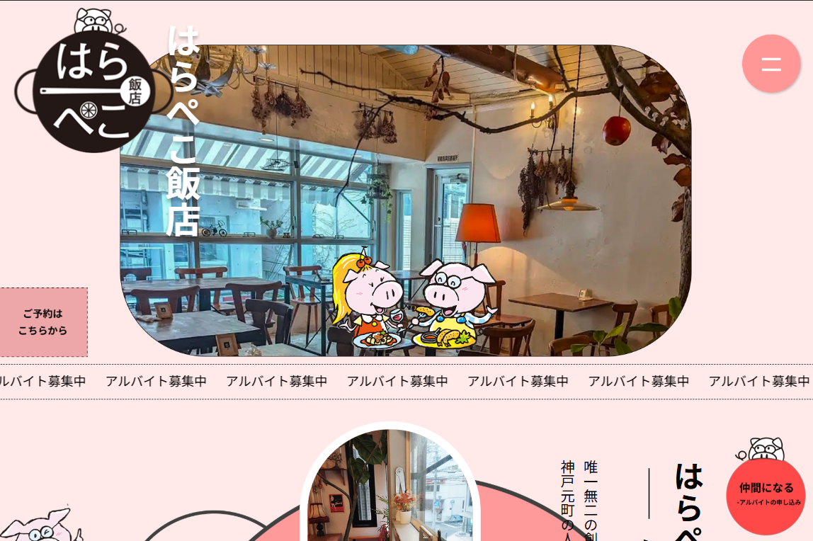 神戸元町にある中華店、はらぺこ飯店のWebサイトを製作しました。サイトを見た人に伝えたい内容を迅速に伝えられるように情報設計しました。また、店主さんの人柄やお店の雰囲気が感じられるような遊び心あるデザインを心掛けました。
